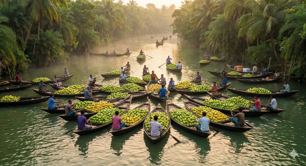 Often called the “Venice of the East,” these tidal waterways are a photographer’s dream. Deshghuri arranges small, private country boats to glide through narrow canals peacefully, far from the noise of tourist crowds, witnessing the floating markets at dawn.